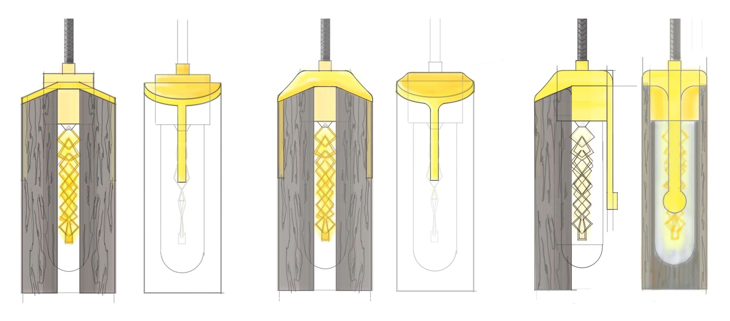 Charred Red Oak provided a solid backing to epoxy the brass reflection plate along the hollowed out dowel.